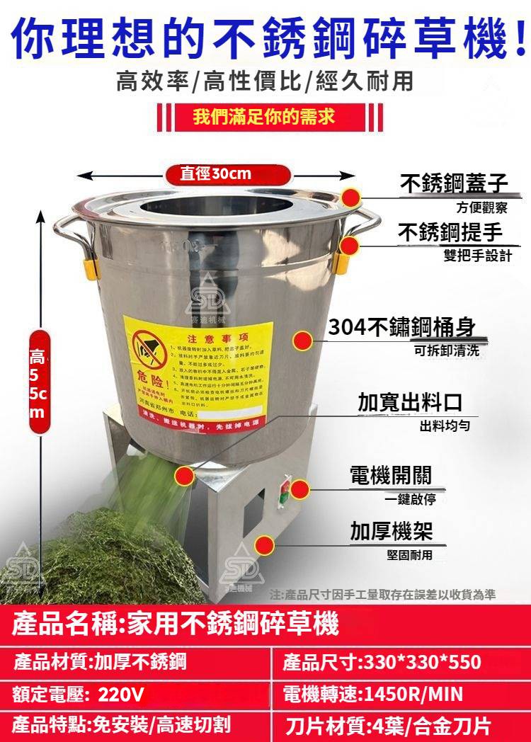 12分鐘前【養殖好幫手】多功能碎菜機,碎菜只需1秒,廠家直銷,貨到付款 量大優惠! - 800W不鏽鋼台式碎菜機--NT$3590