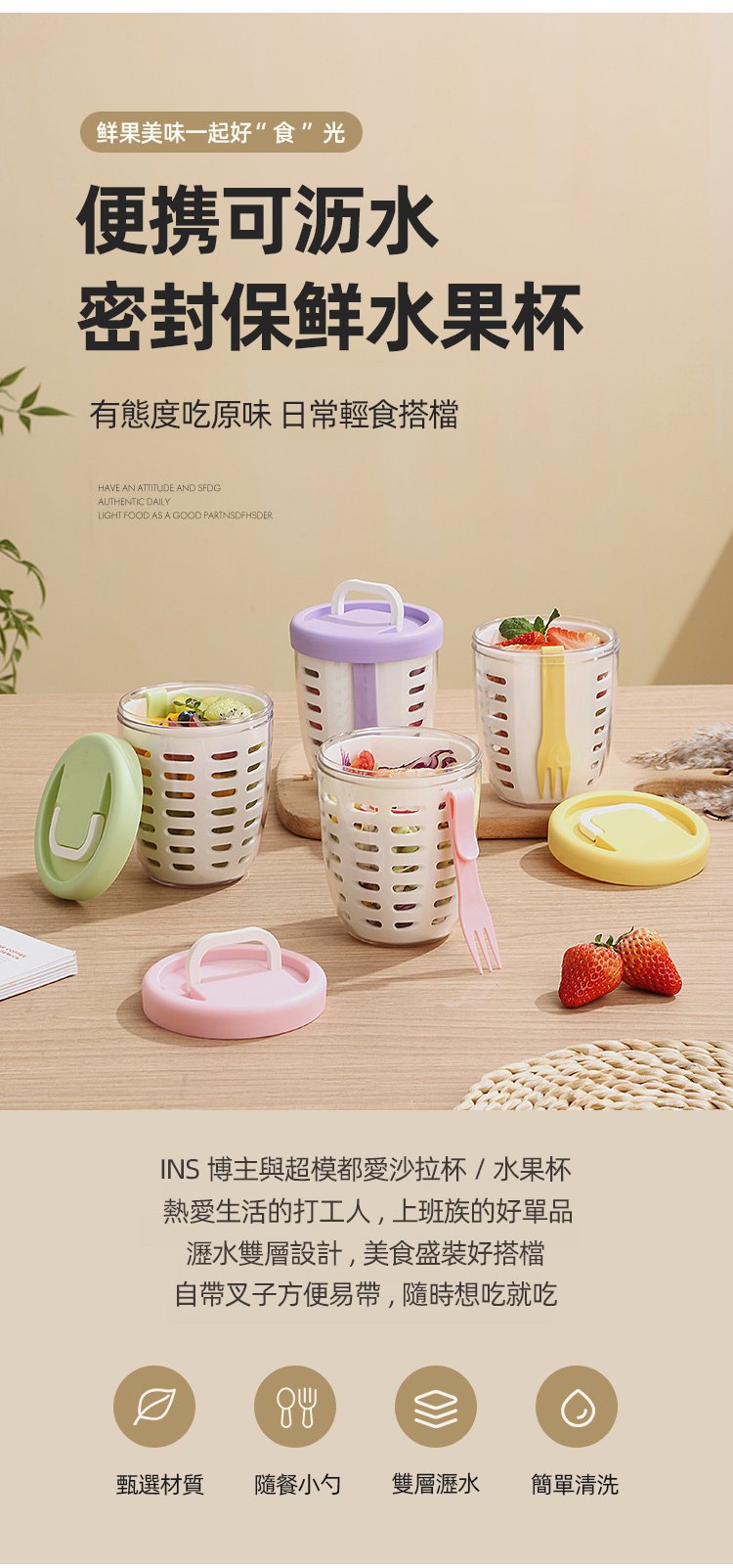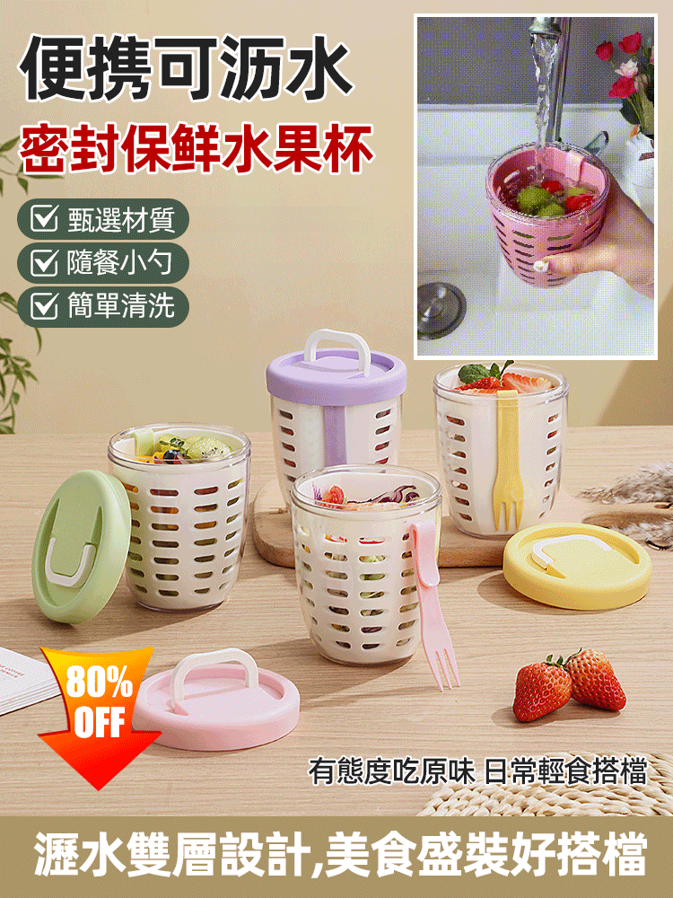 5分鐘前便攜可瀝水密封保鮮水果杯 - 買三送三1299